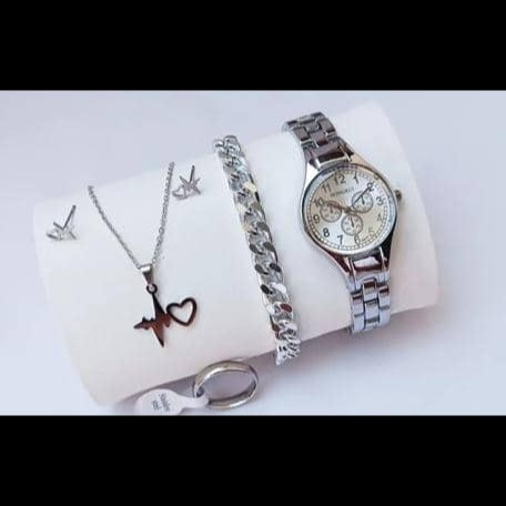 🥳😍ساعت زنانه دستبند نیم ست انگشتر ست کامل طلائی